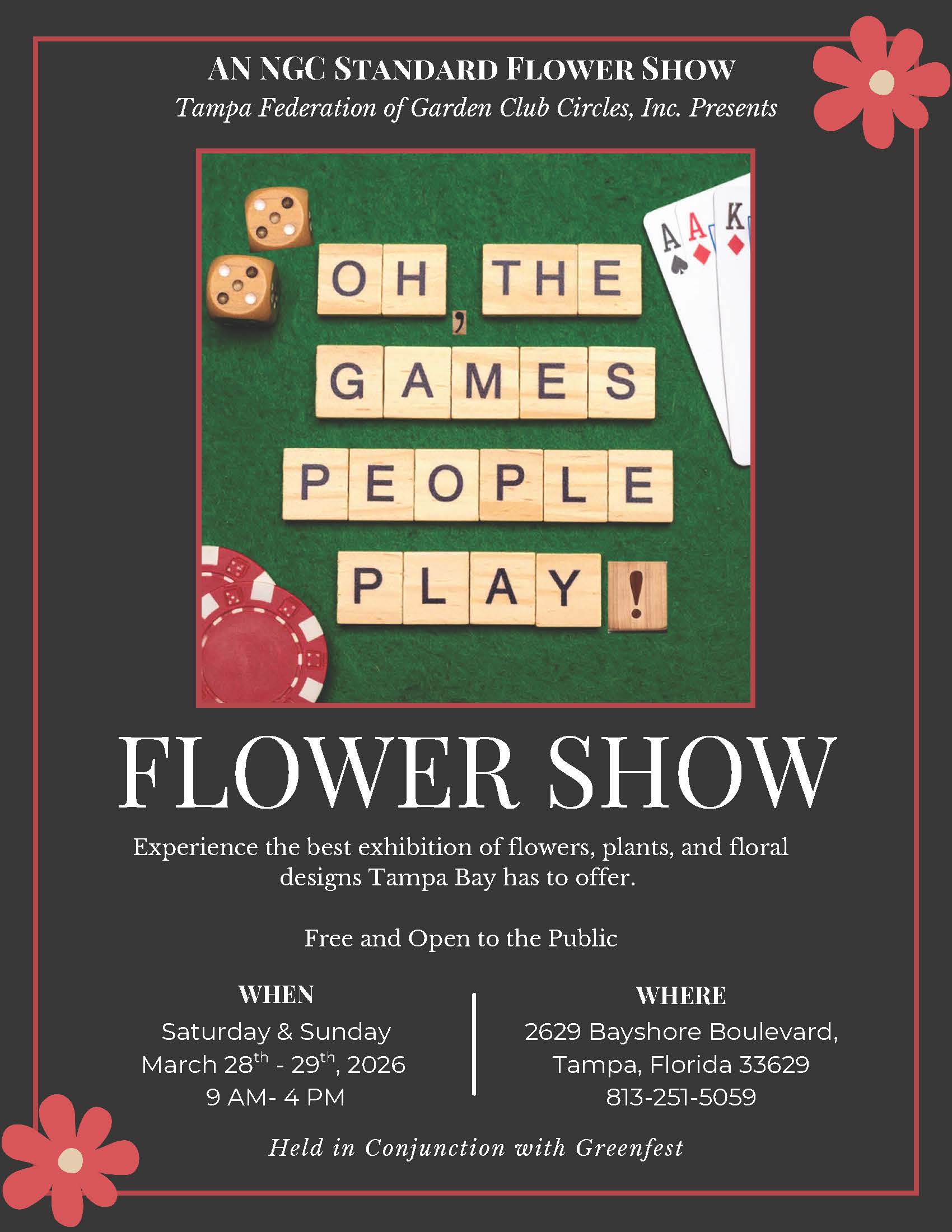 The Mission of The Tampa Garden Club is to promote an interest in gardening, floral and landscape design, and civic and environmental responsibility by providing education, resources, and opportunities for our members, youth, and the community. The purpose of The Tampa Garden Club is to engage in activities that are charitable, educational, and scientific and that stimulate awareness and interest in the value of gardening and promote the education, beautification, and preservation of our community.