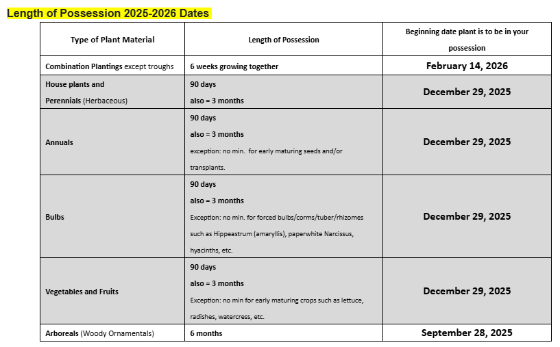 Chart below lists the latest dates Flower show submissions must be in your possession to qualify for entry.